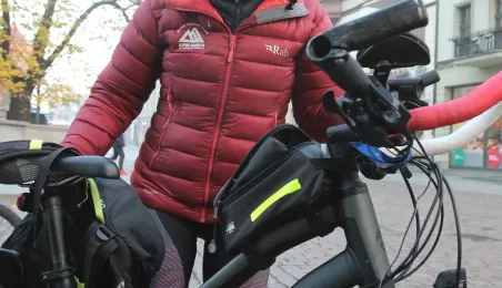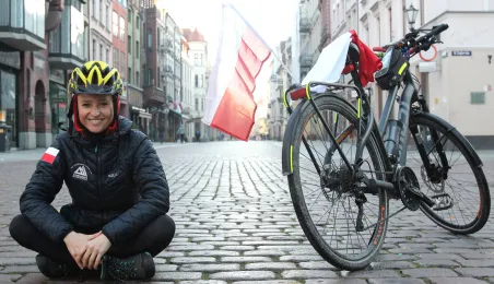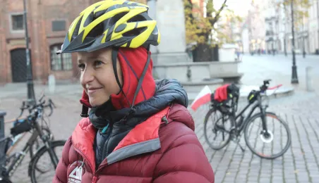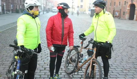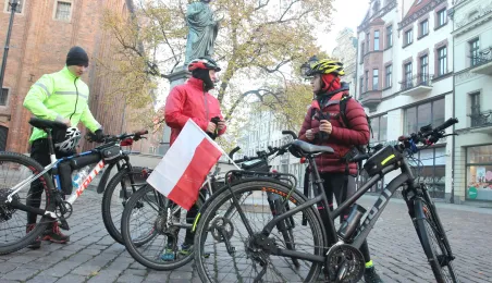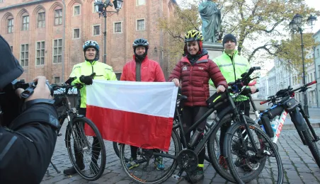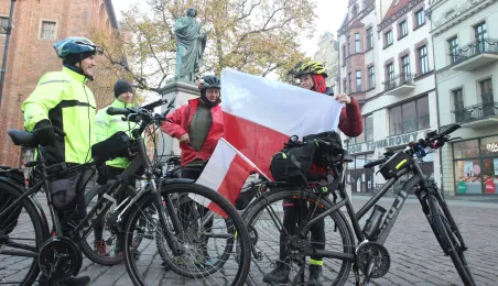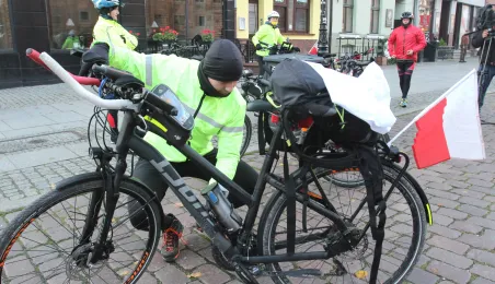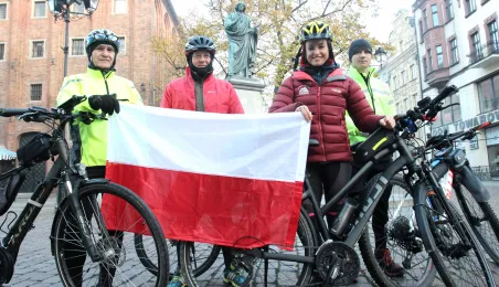 950 km - od Tatr do Helu - przejedzie na rowerze zdobywczyni Korony Ziemi Miłka Raulin w ramach rajdu „Południe-Północ” z okazji 103. rocznicy odzyskania przez Polskę niepodległości. Po drodze dołączają do niej również inni uczestnicy. 9 listopada 2021 r. rajd dotarł do Torunia. Fot. Adam Zakrzewski