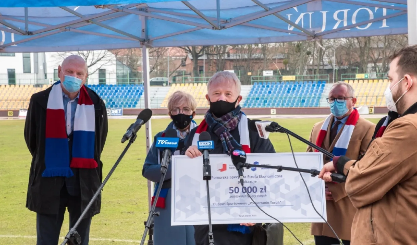 Pomorska Specjalna Strefa Ekonomiczna została sponsorem Klubu Sportowego Pomorzanin Toruń. Wsparcie w wysokości 50 000 zł zostanie przeznaczone na szkolenie dzieci i młodzieży w sekcjach piłkarskiej i hokeja na trawie. Spotkanie przedstawicieli klubu z PSSE i Prezydentem Torunia odbyło się w poniedziałek 29 marca 2021 r. na płycie Stadionu Miejskiego.