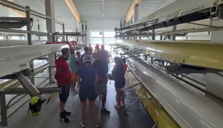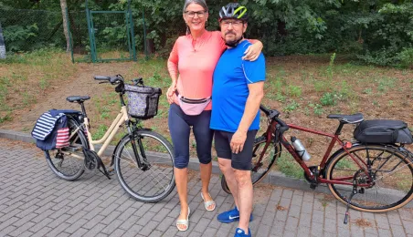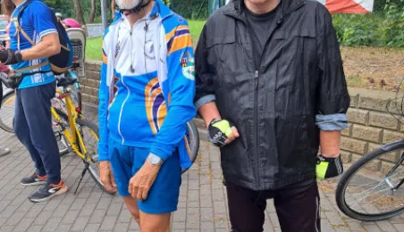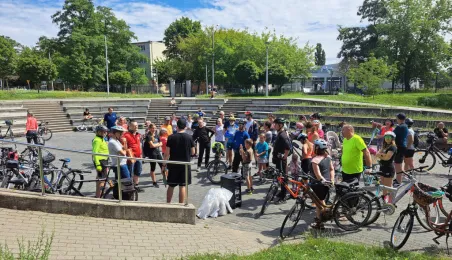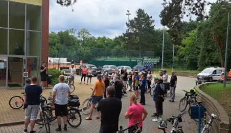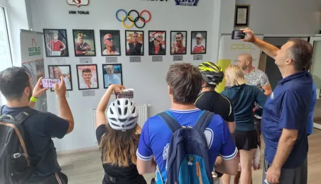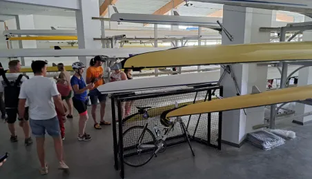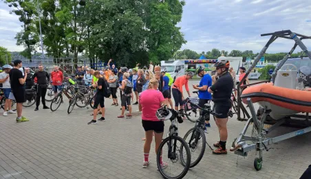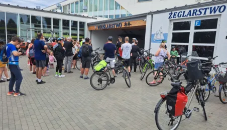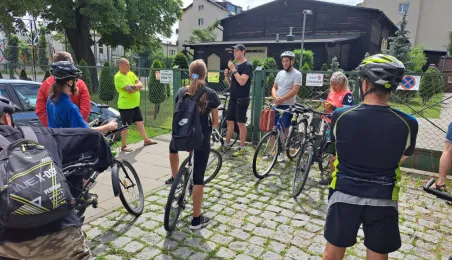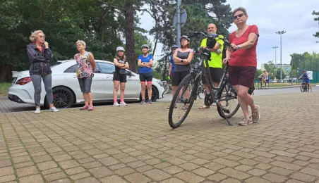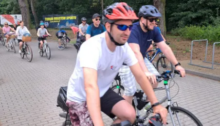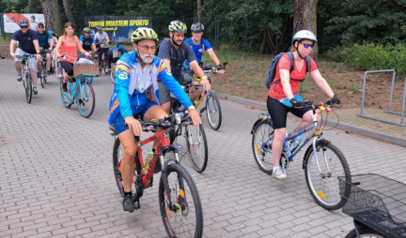 Uczestnicy Historycznego Rajdu Rowerowego poznawali dzieje Torunia z perspektywy rowerowego siodełka. Podczas niedzielnego przedpołudnia odwiedzili korty tenisowe na Skarpie, Przystań Toruń, salę gimnastyczną przy ul. Mickiewicza i Uczelniane Centrum Sportowe UMK przy św. Józefa. / fot. Stowarzyszenie GoSport!