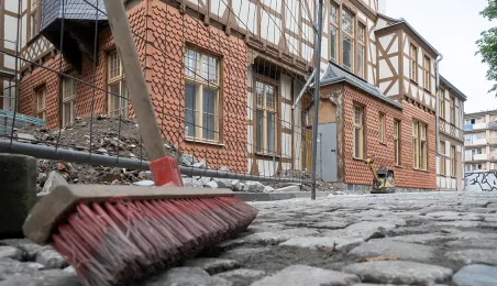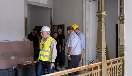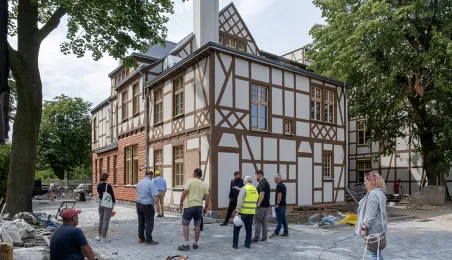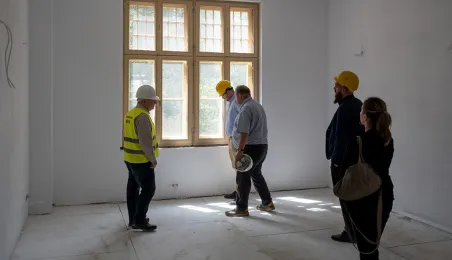 13 lipca 2023 roku odbyło się spotkanie z wykonawcami remontu zabytkowej kamienicy przy ul. Bydgoskiej 50-52. Wzięli w nim udział zastępcy Prezydenta Torunia - Zbigniew Fiderewicz i Paweł Gulewski. / fot. Wojtek Szabelski