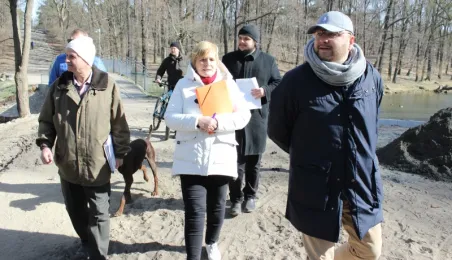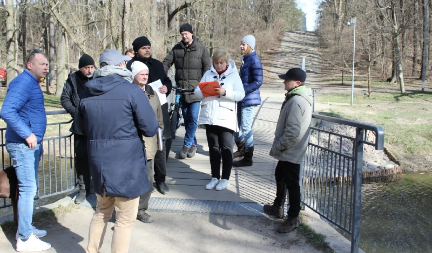 Przedstawiciele miasta oraz Rady Okręgu Bydgoskie Przedmieście sprawdzili wczoraj, 31 marca 2022 r. stan prac w rewitalizowanym Parku Miejskim. To już kolejne spotkanie mające na celu wspólne zadbanie o znajdującą się tam zieleń.