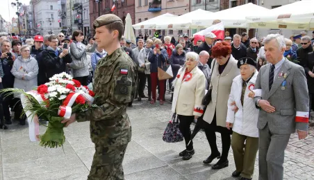 Uroczysta msza święta i uroczystości patriotyczne złożyły się na główne obchody rocznicy uchwalenia Konstytucji 3 Maja w Toruniu. Torunianie zgromadzeni na Rynku Staromiejskim wspólnie odśpiewali hymn państwowy, wysłuchali okolicznościowych przemówień i mini-koncertu Orkiestry Wojskowej z Torunia.