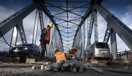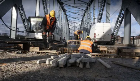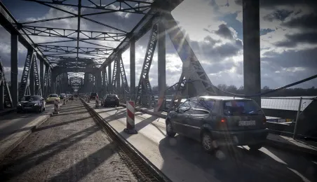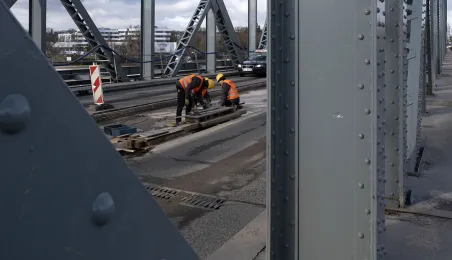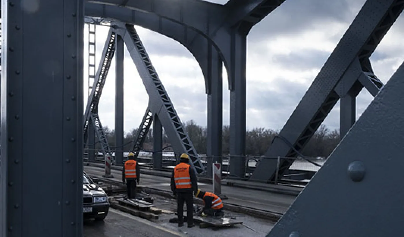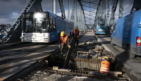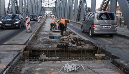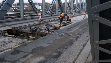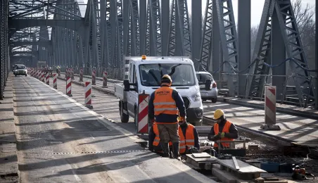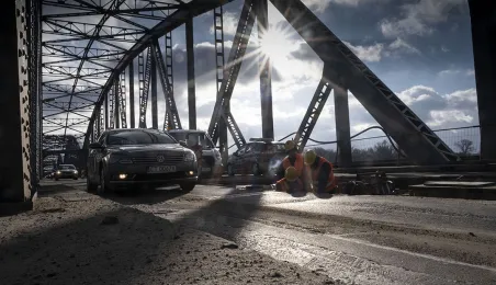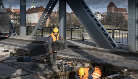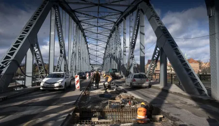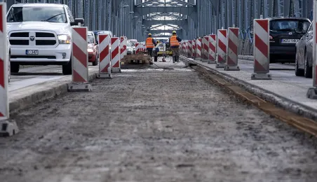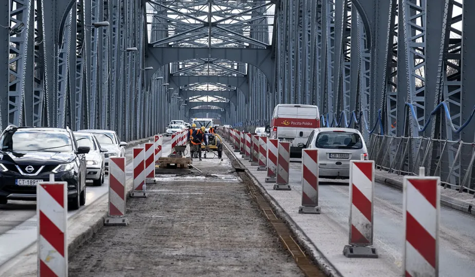 Mimo obfitych opadów śniegu trwa rozbudowa mostu drogowego im. J.Piłsudskiego w Toruniu. Inwestycja ma się zakończyć jesienią 2021 r. Kosztuje ponad 122 mln zł, a jej wykonawcą jest konsorcjum firm INTOP Warszawa Sp. z o.o. (lider) i EURO-DARMAL Sp. z o.o. z Kamiennej Góry (partner). Fot. Wojtek Szabelski