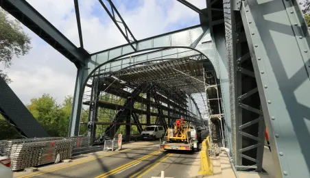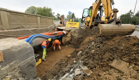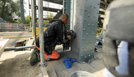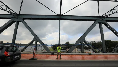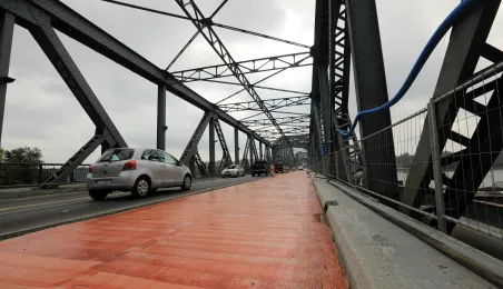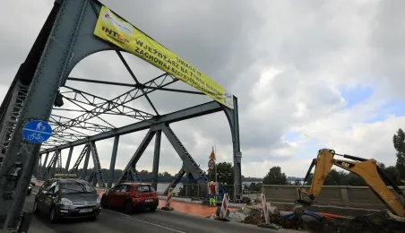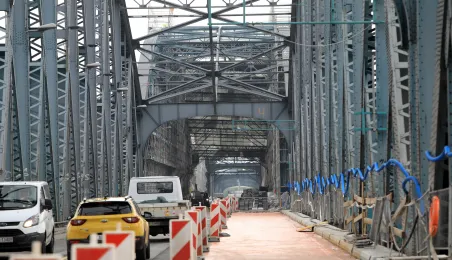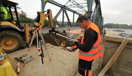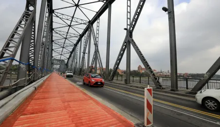 Rozpoczęło się układanie nowego asfaltu na rozbudowywanym moście drogowym im. J.Piłsudskiego w Toruniu. Inwestycja rozpoczęta w kwietniu 2020 r. ma się zakończyć jesienią 2021 r. Kosztuje ponad 122 mln zł, a jej wykonawcą jest konsorcjum firm INTOP Warszawa Sp. z o.o. (lider) i EURO-DARMAL Sp. z o.o. z Kamiennej Góry (partner). Fot. Sławomir Kowalski