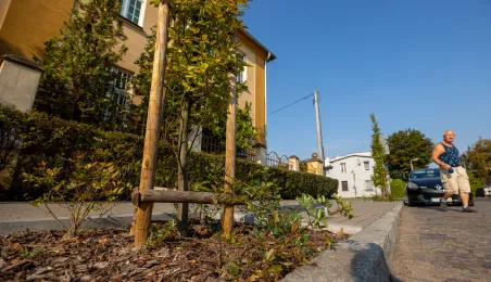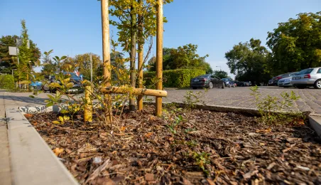 W Toruniu od 2022 r. trwa rozszczelnianie miasta - drogowcy demontują kostkę brukową, w uwolnionych przestrzeniach nasadzana jest zieleń. Efekty wspólnego działania Wydziału Środowiska i Ekologii Urzędu Miasta Torunia oraz Miejskiego Zarządu Dróg w Toruniu są już widoczne w kilku miejscach, m.in. na ul. Sienkiewicza, Kraszewskiego, Sobieskiego. Fot. Agnieszka Bielecka