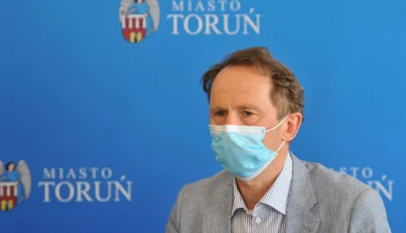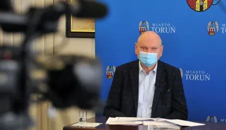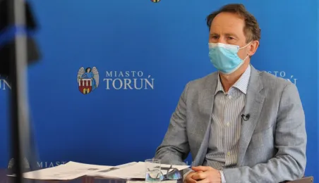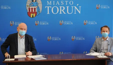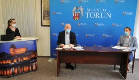 Według szacunków Ośrodka Informacji Turystycznej, zaledwie 900 tys. osób odwiedziło Toruń w 2020 r. Pandemia sparaliżowała ruch turystyczny w naszym mieście, drastycznie spadło też obłożenie miejsc hotelowych. O tym była mowa na konferencji prasowej z udziałem Prezydenta Miasta Torunia Michała Zaleskiego i dyrektora OIT Szymona Wiśniewskiego 13 kwietnia 2021 r. Fot. Małgorzata Litwin