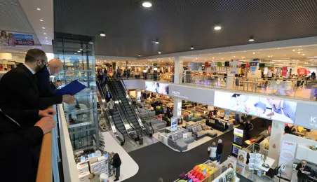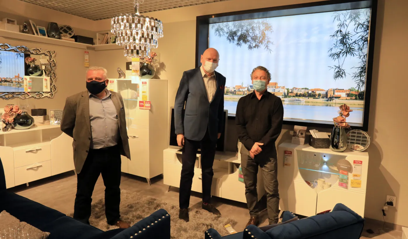 8 października 2020 r. został otwarty toruński Salon Agata. Dzień później nową inwestycję w Toruniu odwiedził prezydent Michał Zaleski, gdzie spotkał się z przedstawicielami zarządu spółki Agata SA. Fot. Sławomir Kowalski