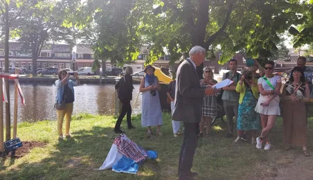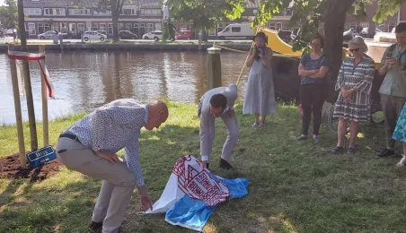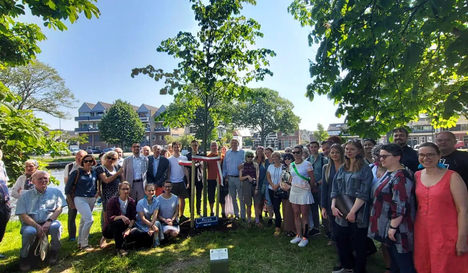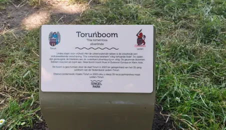 9 czerwca 2023 roku w Lejdzie odbyło się symboliczne posadzenie i odsłoniędzie drzewa przyjaźni. Drzewo zostało podarowane przez Miasto Toruń z okazji 35-lecia współpracy partnerskiej z holenderskim miastem Lejda. W uroczystości wziął udział Prezydent Torunia Michał Zaleski oraz Przewodniczący Rady Miasta Torunia Marcin Czyżniewski. / fot. Ewa Banaszczuk-Kisiel
