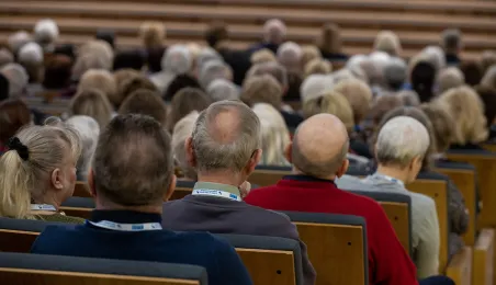 - Chcemy, żeby to co w Toruniu jest dla seniorek i seniorów było jak najlepiej dla nich przygotowane i przystosowane - podkreślił prezydent Torunia Michał Zaleski na VI edycji Forum Seniora, które odbyło się 15 marca 2023 r. w auli Uniwersytetu Mikołaja Kopernika. Zdj. Wojtek Szabelski
