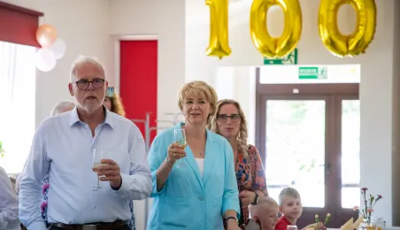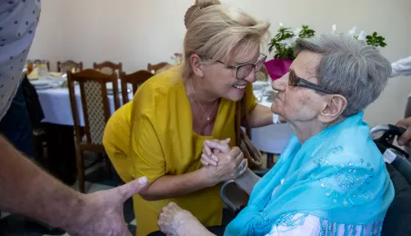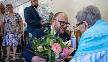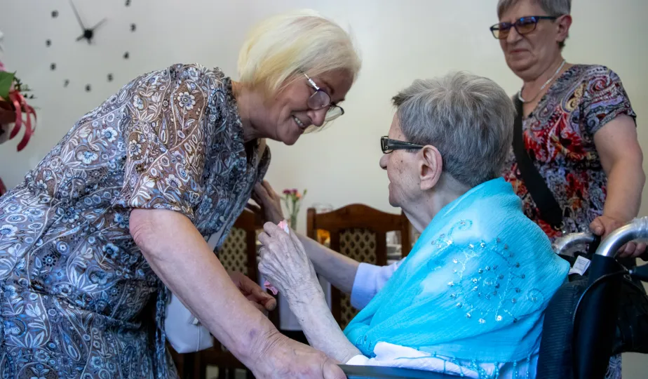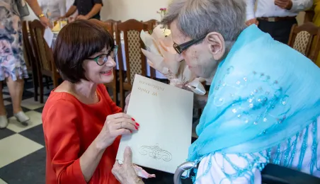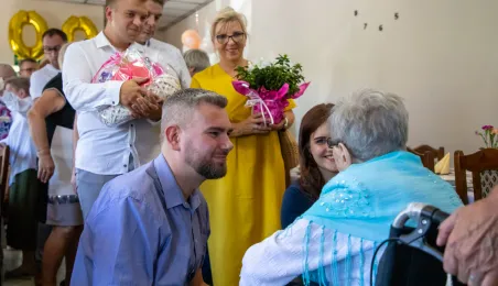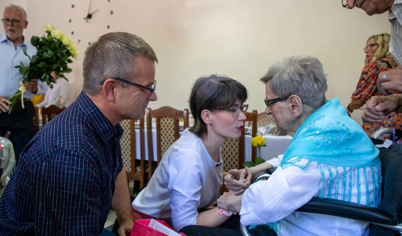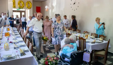 6 lipca 2024 r. rodzina i przyjaciele świętowali 100. urodziny pani Anny Jankowskiej. Do życzeń dołączył się prezydent Paweł Gulewski. Fot. © UMT 2024, autor: Agnieszka Bielecka, licencja: CC BY-NC 4.0