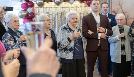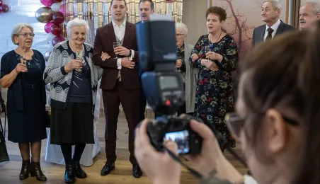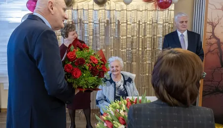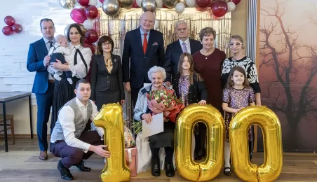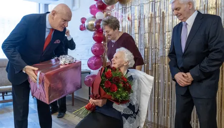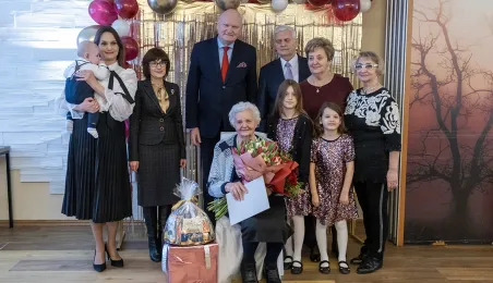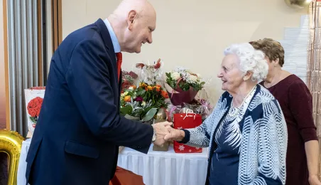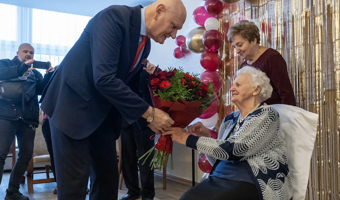 6 stycznia 2024 roku swoje setne urodziny obchodziła pani Kazimiera Szarafińska. Z życzeniami do jubilatki udał się prezydent Michał Zaleski. Fot. Wojtek Szabelski