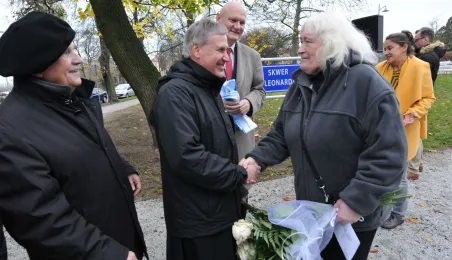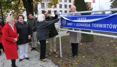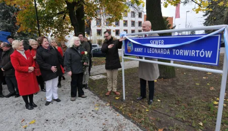 Skwer przy ul. Bydgoskiej od 15 listopada 2018 r. nosi imię Anny i Leonarda Torwirtów. Z wnioskiem o uhonorowanie zasłużonego dla Torunia małżeństwa artystów, plastyków, konserwatorów zabytków i scenografów wystąpiły mieszkanki Torunia - Maria Pekasiewicz i Beata Dubilewicz. Okazją do nadania nazwy jest przypadająca w tym roku 106. rocznica urodzin -28 listopada i 51. rocznica śmierci - 9 listopada Leonarda Torwirta oraz 26 rocznica śmierci - 20 grudnia Anny Torwirtowej. Fot. Małgorzata Litwin