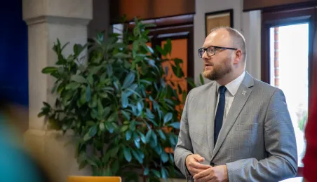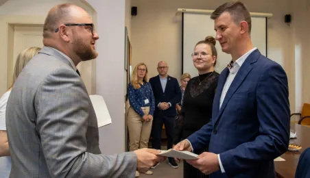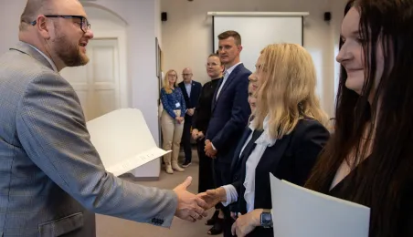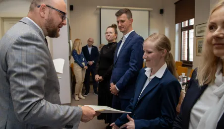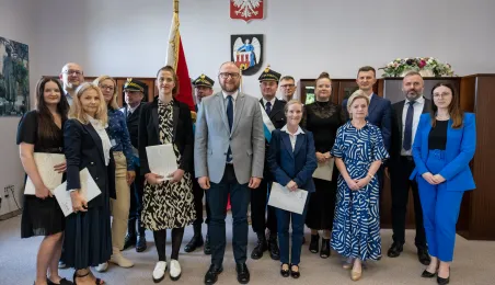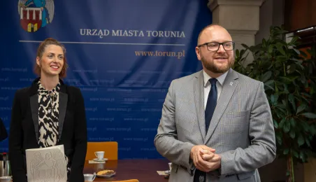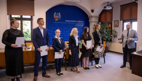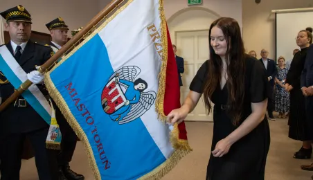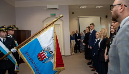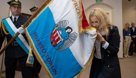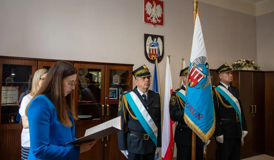 Uroczyste ślubowanie na sztandar miasto zakończyło służbę przygotowawczą 6 nowych pracowników Urzędu Miasta Torunia. 17 czerwca 2024 r. odebrały z rąk prezydenta Pawła Gulewskiego akty powołań na stanowiska urzędnicze. Fot. Agnieszka Bielecka