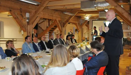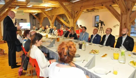 Kolejne Śniadanie Biznesowe Prezydenta Miasta Torunia, którego organizatorem jest Centrum Wsparcia Biznesu w Toruniu, odbyło się 19 maja 2017 r. Tym razem prezydent Michał Zaleski zaprosił do Międzynarodowego Centrum Spotkań Młodzieży toruńskich mecenasów kultury, czyli przedsiębiorców wspierających wydarzenia artystyczne w naszym mieście. Fot. Małgorzata Litwin