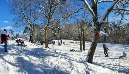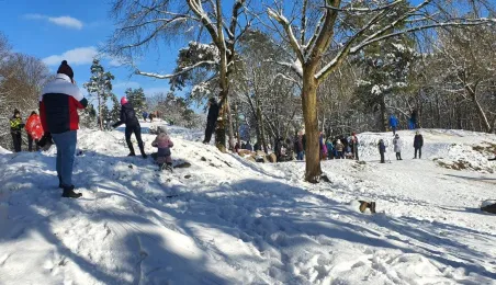 Prawdziwie bajkowa zimowa aura zapanowała w lasku na toruńskiej Skarpie, w rejonie Fortu I. Po obfitych opadach śniegu 4-5 lutego 2023 r. wielu torunian wybrało się tam na spacery, a spędzające ferie w mieście dzieci - na sanki i narty. Fot. Małgorzata Litwin