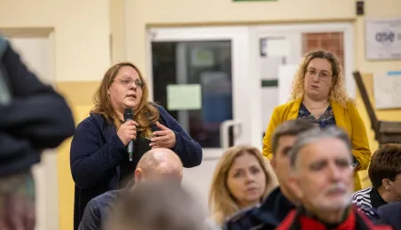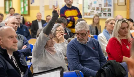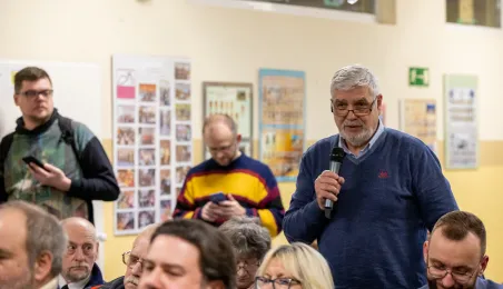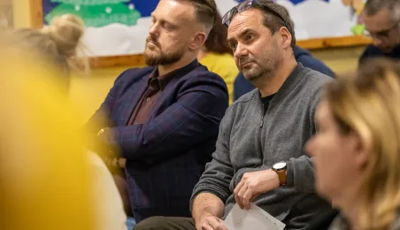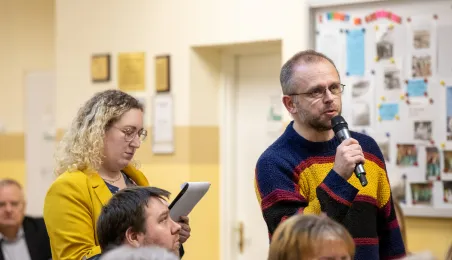 30 stycznia 2024 r. w Szkole Podstawowej nr 34 odbyło się czwarte z kolei spotkanie prezydenta Michała Zaleskiego z mieszkańcami, którzy chętnie i licznie zadawli pytania dotyczące swojego osiedla. Odpowiedzi, oprócz prezydenta, udzialali przedstawiciele poszczególnych wydziałów Urzędu Miasta. Fot. Agnieszka Bielecka