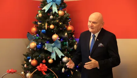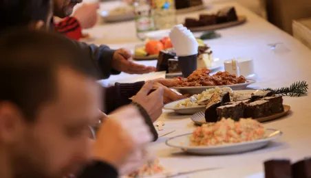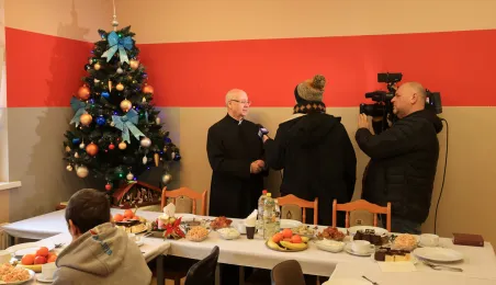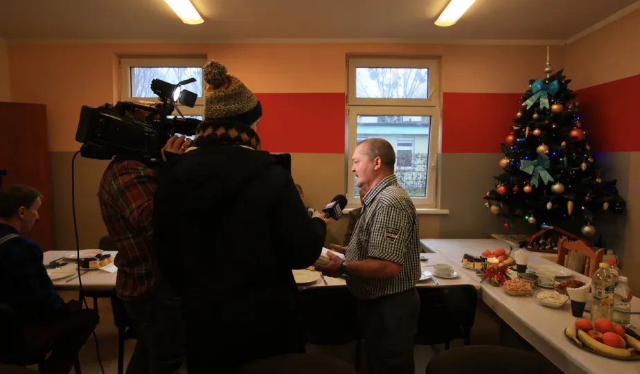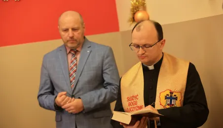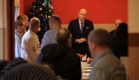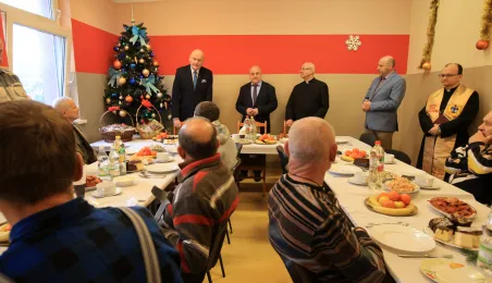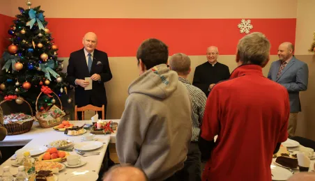 22 grudnia 2022 r. prezydent Michał Zaleski spotkał się z podopiecznymi Miejskiejskiego Schroniska dla Bezdomnych na tradycyjnym spotkaniu świątecznym. Fot. Sławomir Kowalski