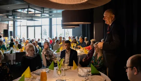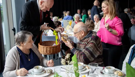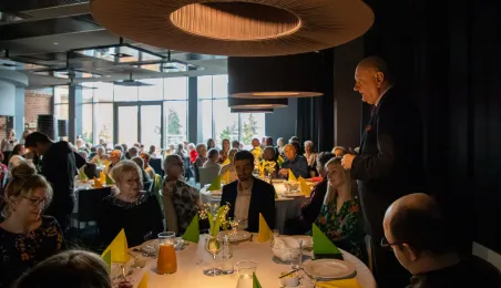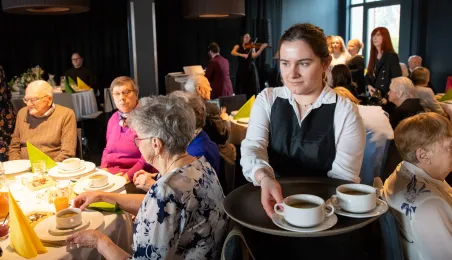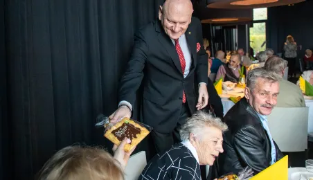 26 marca 2024 r. prezydent Michał Zaleski spotkał się w hotelu Bulwar z toruńskimi seniorami z okazji zbliżających się Świąt Wielkanocnych. Organizatorem spotkania było Toruńskie Centrum Usług Społecznych. Fot. Agnieszka Bielecka
