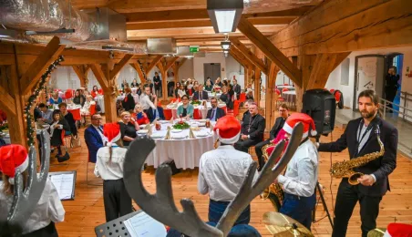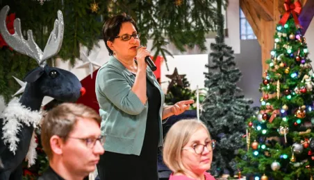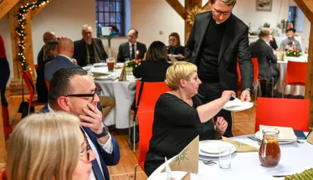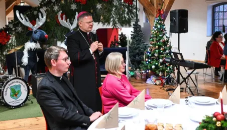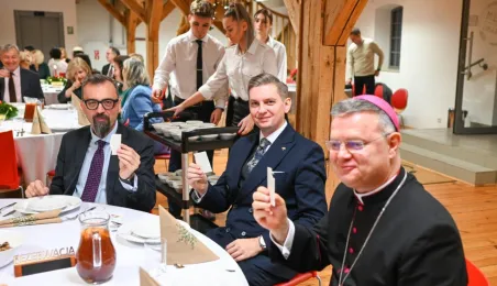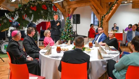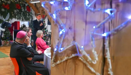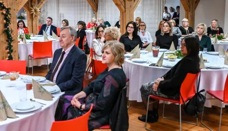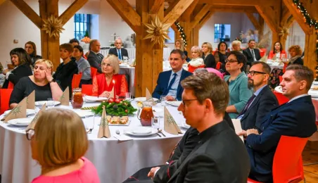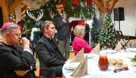 20 grudnia 2022 r. w MCSM odbyło się spotkanie wigilijne dyrektorów toruńskich placówek oświatowych, w którym udział wzięli także: bp diecezji toruńskiej Wiesław Śmigiel, zastępca prezydenta miasta Adrian Mól, przewodniczący Rady Miasta Marcin Czyżniewski, wicekuratorka Maria Mazurkiewicz, dyrektorka Wydziału Edukacji UMT Anna Łukaszewska. Fot. Lech Kamiński