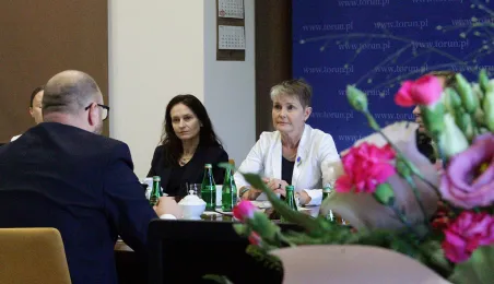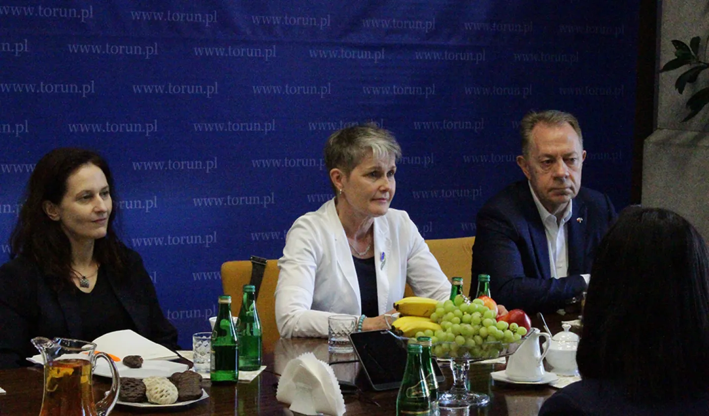 27 maja 2024 r. Urząd Miasta Torunia odwiedziła Pani Päivi Maarit Laine, Ambasador Finlandii w Polsce. Spotkał się z nią Prezydent Paweł Gulewski. / fot. Paula Gałązka