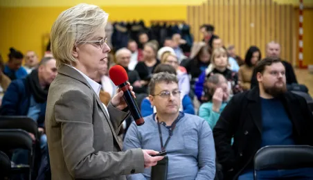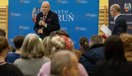 25 stycznia 2024 r. w Szkole Podstawowej nr 15 odbyło się spotkanie Prezydenta Michała Zaleskiego z mieszkancami Torunia. / fot. Wojtek Szabelski