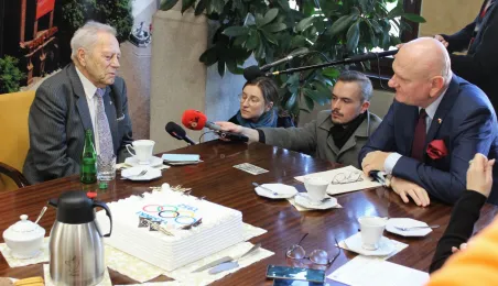 Najstarszy toruński olimpijczyk - Tadeusz Tulidziński, 22 października 2022 roku skończył 90 lat. Z jubilatem spotkał się dziś, 17 listopada 2022 roku, Prezydent Torunia Michał Zaleski.