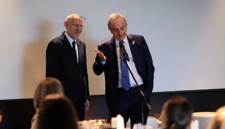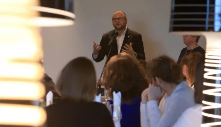 16 maja 2024 r. w hotelu Bulwar odbyło się spotkanie wydane z okazji forum YUFE, w którym udział wzięli przedstawiciele uczelni wyższych z Finlandii, Cypru, Wielkiej Brytanii, Hiszpanii, Francji, Chorwacji, Belgii, Niemiec oraz toruńskiego Uniwersytetu Mikołaja Kopernika. Gości powitał prezydent Paweł Gulewski. Fot. Sławomir Kowalski