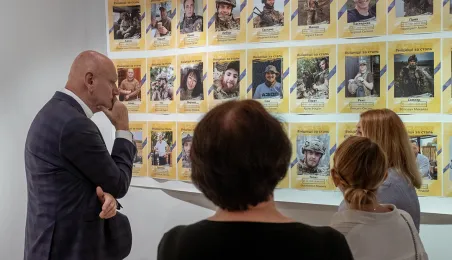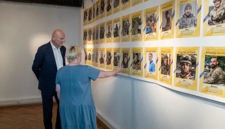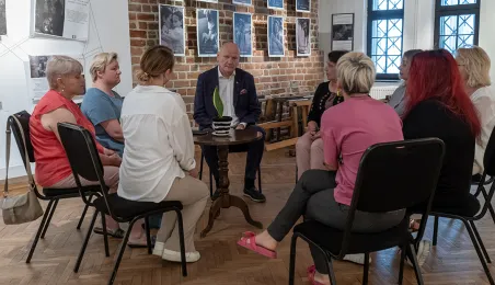 W Kombinacie Kultury przy ul. Podmurnej 1/3 została otwarta wystawa poświęcona pamięci obrońców ukraińskiego Mariupola, który stało się celem zaciekłych ataków Rosjan po napaści na Ukrainę. 30 czerwca 2023 r. z członkiniami Stowarzyszenia Rodzin Obrońców Azowstalu - kombinatu metalurgicznego w Mariupolu, ostatniego punktu heroicznej obrony miasta, spotkał się prezydent Torunia Michał Zaleski. Fot. Wojtek Szabelski