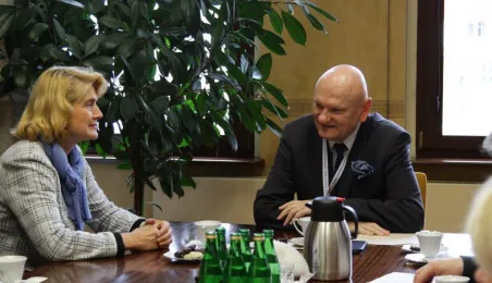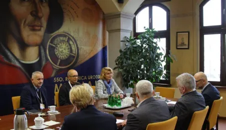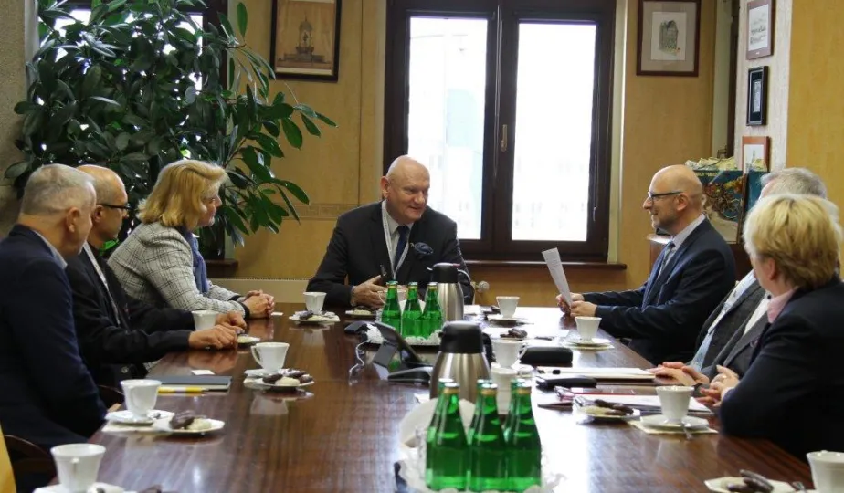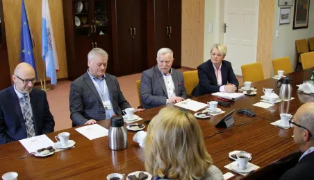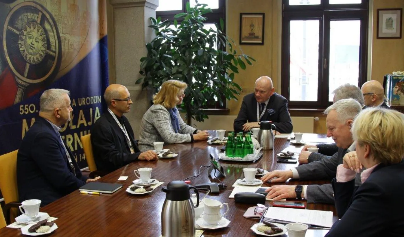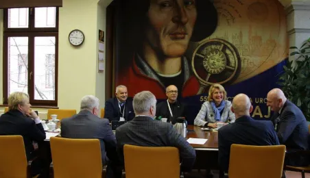 31 marca 2023 roku w Urzędzie Miasta Torunia obyło się spotkanie z władzami Europejskiej Federacji Lekkiej Atletyki Masters. Wzięli w nim udział: prezydent Torunia Michał Zaleski, jego zastępca Zbigniew Fiderewicz, dyrektor Wydziału Sportu i Rekreacji UMT Mariola Soczyńska, prezes Polskiego Związku Lekkiej Atletyki Masters Wacław Krankowski oraz przedstawiciele EMA: prezydent federacji Walentina Fedjuschina, wiceprezydent Giovanni Tracanelli oraz członek komisji technicznej Ivan Puksar. / fot. Paula Gałązka