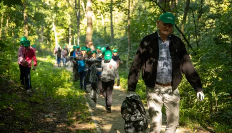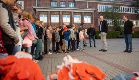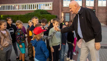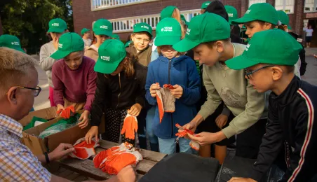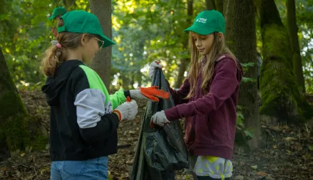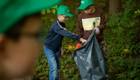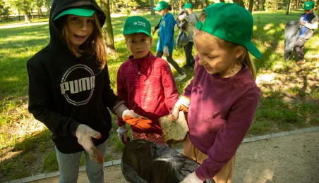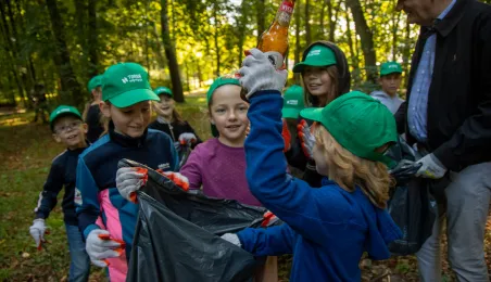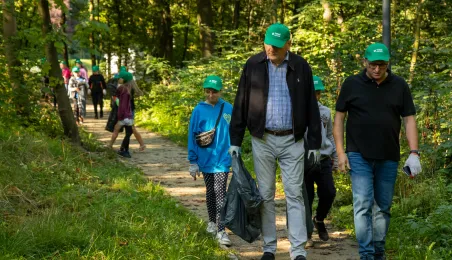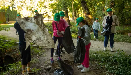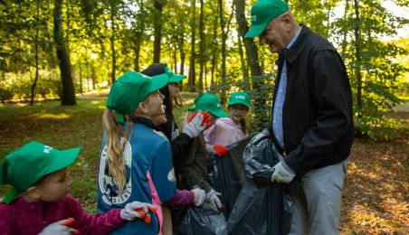15 września 2023 r. prezydent Michał Zaleski wziął udział w corocznej akcji "Sprzątanie Świata". Tym razem wraz z uczniami Szkoły Podstawowej nr 14 porządkował teren Parku Tysiąclecia. Fot. Agnieszka Bielecka