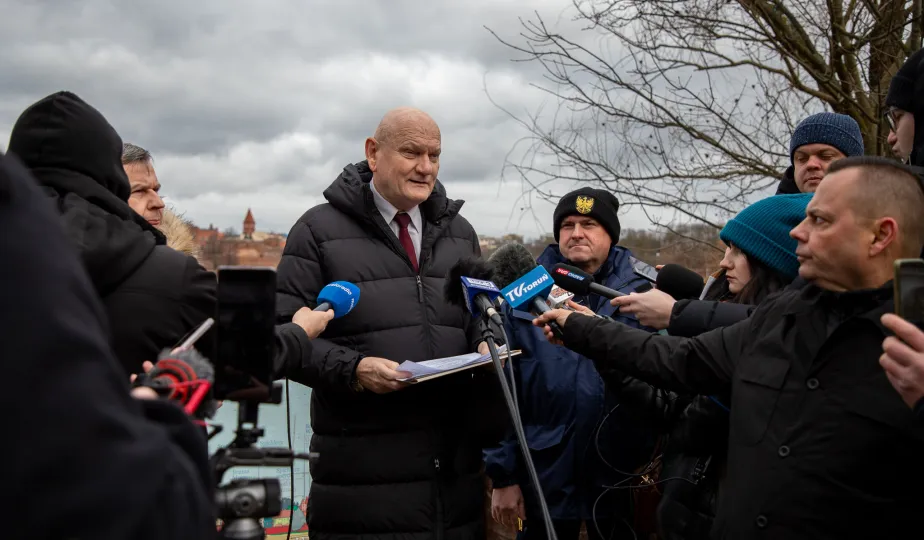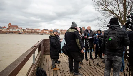 Z dniem 12 lutego 2024 r. od godz. 10:00 ogłoszony został stan pogotowia przeciwpowodziowego dla terenu Gminy Miasta Toruń. - Poziom wody w Wiśle na wodowskazie osiągnął 540 cm. W tej chwili nie ma powodów do obaw, ale prosimy o zachowanie ostrożności - apelował podczas briefingu prasowego prezydent Torunia Michał Zaleski. Fot. Agnieszka Bielecka