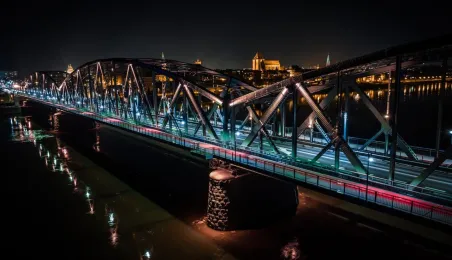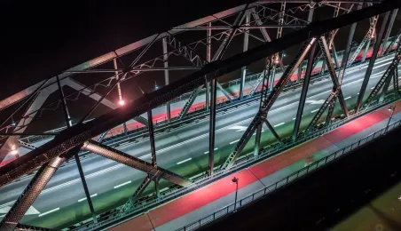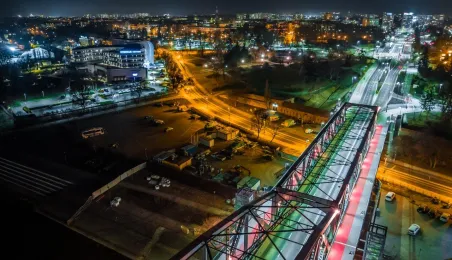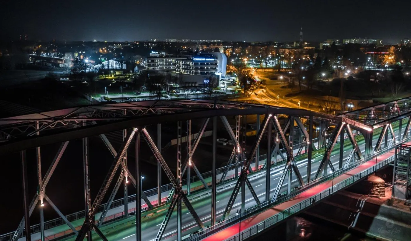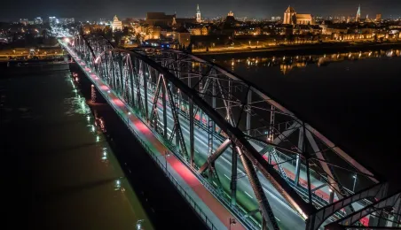 Poszerzony o boczne półki z windami i punktami widokowymi, gruntownie wyremontowany i atrakcyjnie oświetlony jest most drogowy im. Józefa Piłsudskiego w Toruniu. Jego rozbudowa zakończy się w kwietniu 2022 r. Fot. Błażej Antonowicz PowrótUdostępnij na: XUdostępnij na: FBDrukujPDF