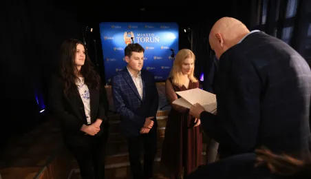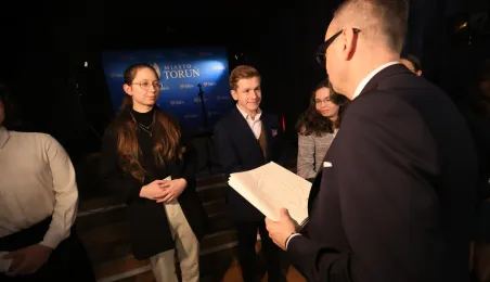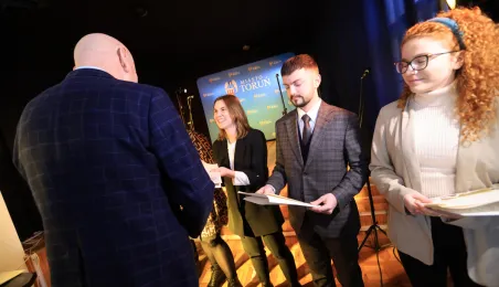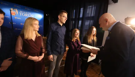 15 stycznia 2024 r. w Domu Harcerza prezydent Michał Zaleski wręczył 48 decyzji stypendialnych studentom toruńskich uczelni wyższych. Fot. Sławomir Kowalski