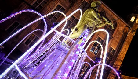 Toruńska starówka jak co roku zachwyca iluminacjami – od 4 grudnia 2021 r. miasto jest już przybrane świątecznie. Świąteczną atmosferę zapewnia także Jarmark Bożonarodzeniowy. Fot. Sławomir Kowalski