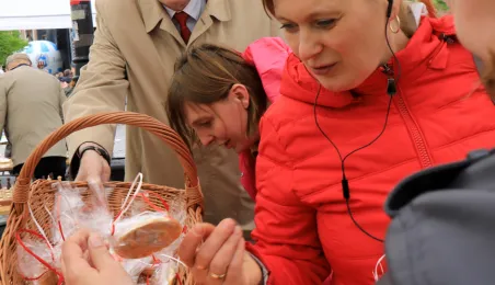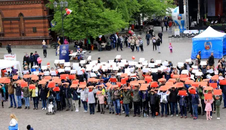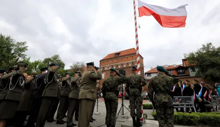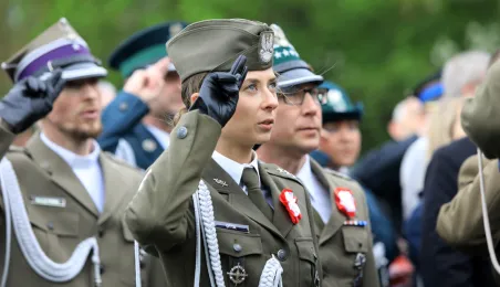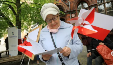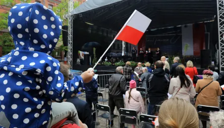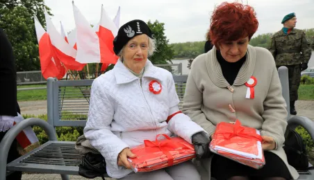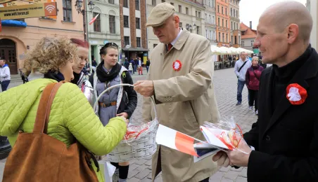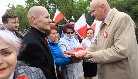 Na Skwerze im. Oficerskiej Szkoły Marynarki Wojennej torunianie uczcili 2 maja 2019 r. Święto Flagi Rzeczypospolitej Polskiej. Fot. Sławomir Kowalski