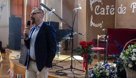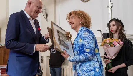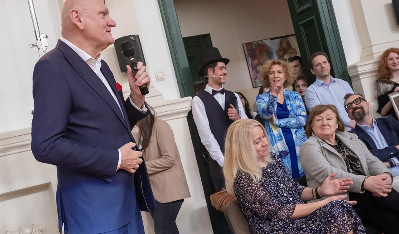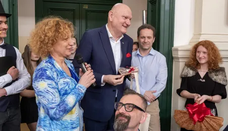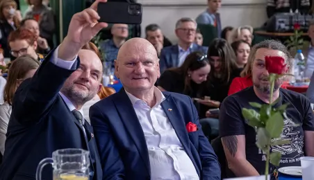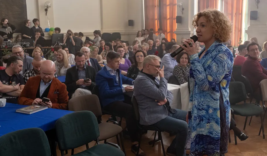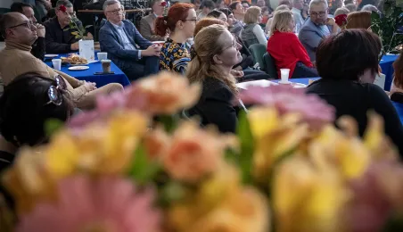 5 kwietnia 2024 roku społeczność I Liceum Ogólnokształcącego spotkała się na corocznym święcie szkoły. Nie zabrakło gości specjalnych: prezydenta Michała Zaleskiego, marszałka Piotra Całbeckiego i przewodnicząćego Rady Miasta Marcina Czyżniewskiego. Fot. Wojtek Szabelski