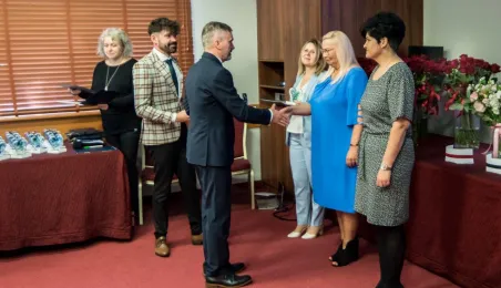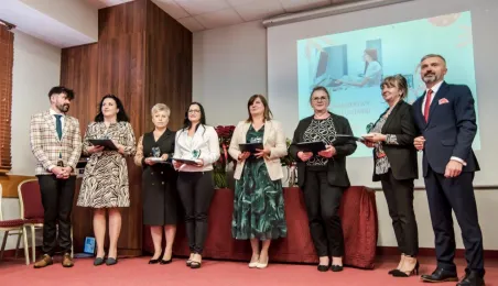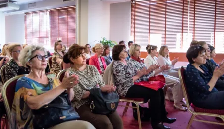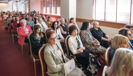 Z okazji święta pielęgniarek i położnych w dniu 10 maja 2022 r. w hotelu Filmar odbyło się spotkanie przedstawicielek i przedstawicieli tych zawodów, w ktorym udzial wziął prezydent Michał Zaleski. Fot. Lech Kamiński