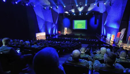 Uroczysta prelekcja w CKK Jordanki zainaugurowała 2 grudnia 2021 r. w Toruniu centralne obchody Święta Wojsk Rakietowych i Artylerii, zorganizowane przed dniem patronki tej formacji św. Barbary. Fot. Małgorzata Litwin