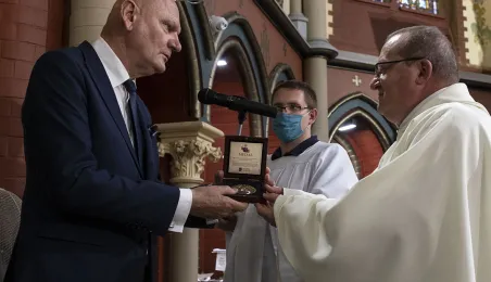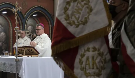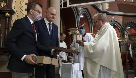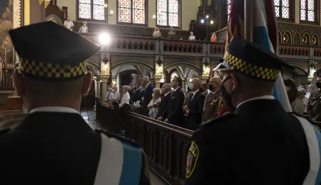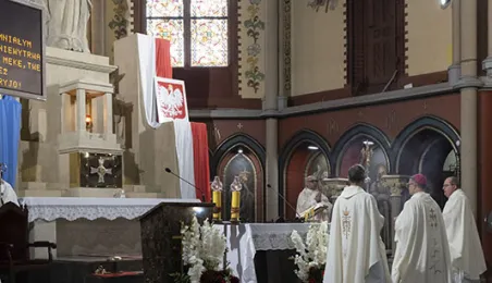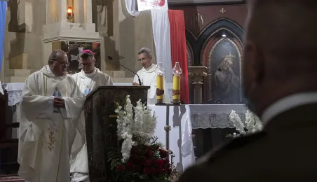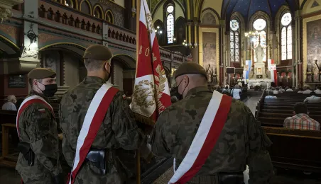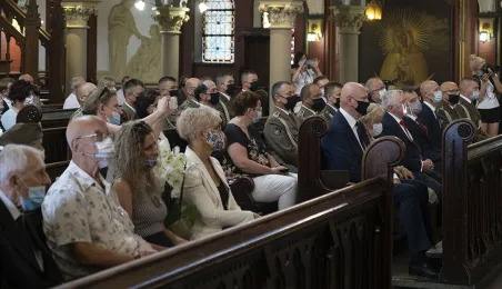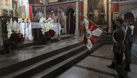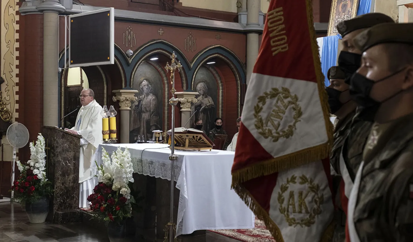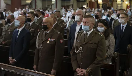Msza św. w intencji Ojczyzny 15 sierpnia 2020 r., odprawiona w święto Wniebowzięcia NMP przez bpa Wiesława Śmigla w kościele garnizonowym św. Katarzyny, była jednym z głównych wydarzeń toruńskich obchodów 100-lecia Bitwy Warszawskiej. Poprzedziło ją złożenie kwiatów pod pomnikiem gen. Józefa Hallera. Fot. Wojtek Szabelski