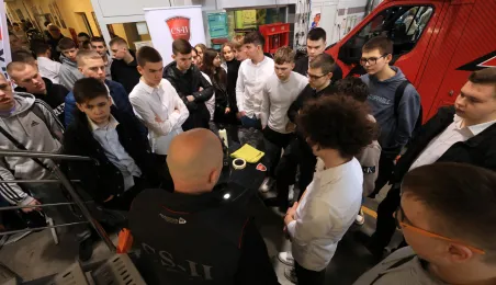 Zespół Szkół Samochodowych obchodził 18 marca 2024 r. swoje coroczne święto. Obchody zostały połączone z Akademią Mechanika On-Tour, w ramach której uczniowie mogli poznać tajniki pracy w warsztatcie samochodowym. Fot. Sławomir Kowalski