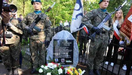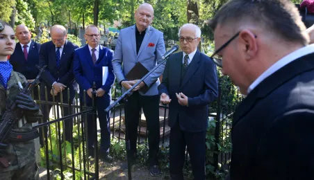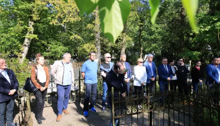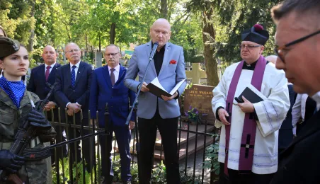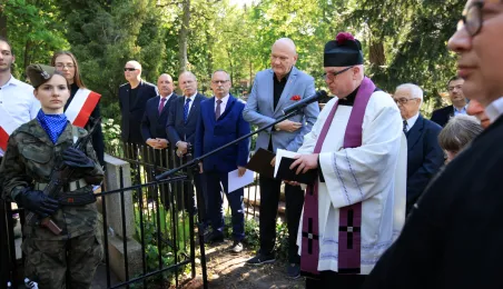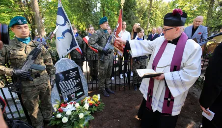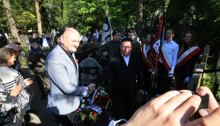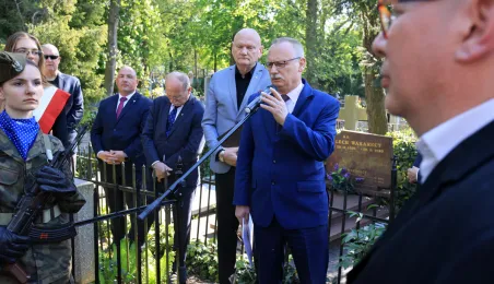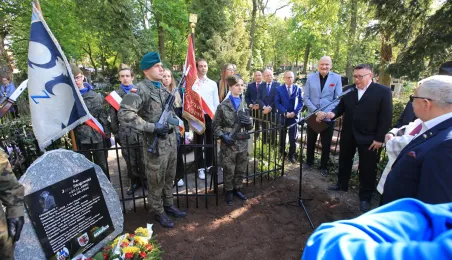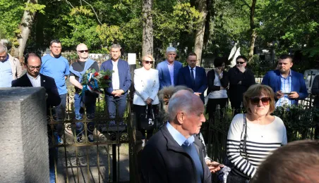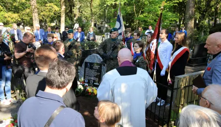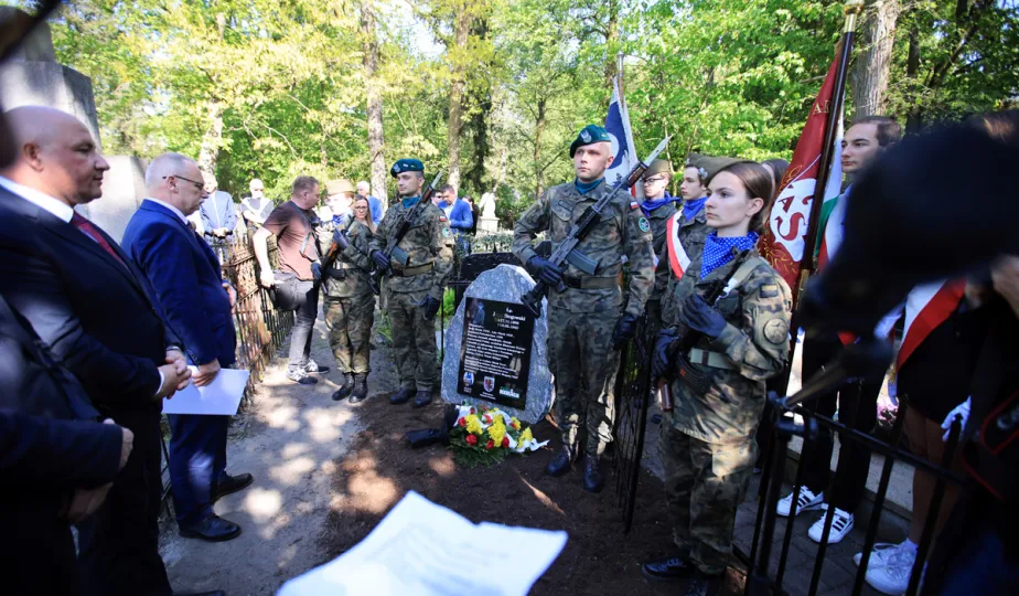 12 maja 2023 r. na cmentarzu św. Jerzego przy ul. Gałczyńskiego odsłonięto kamień upamiętniający przedwojennego trzykrotnego uczestnika igrzysk olimpijskich, hokeistę Józefa Stogowskiego. Fot. Sławomir Kowalski