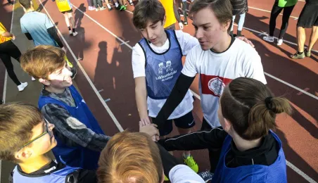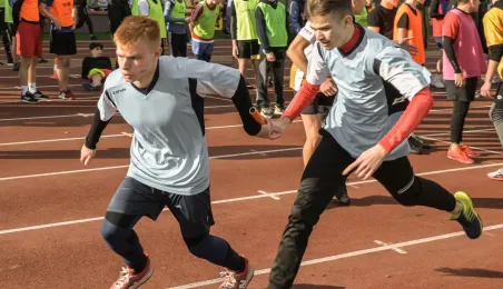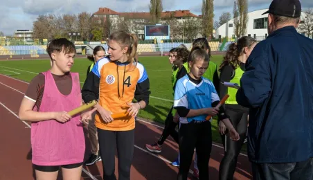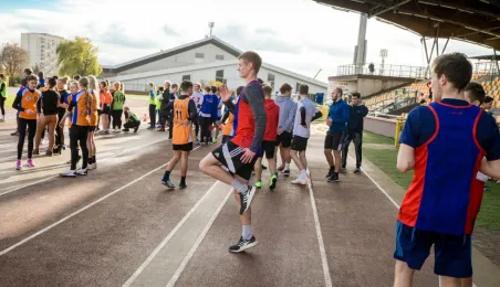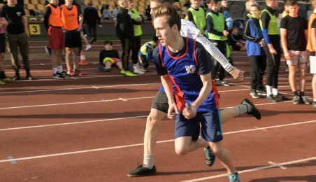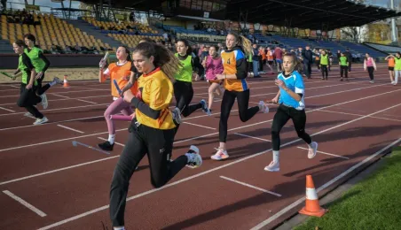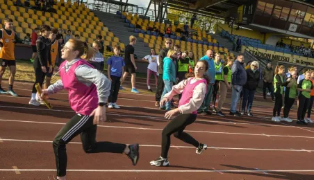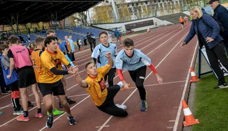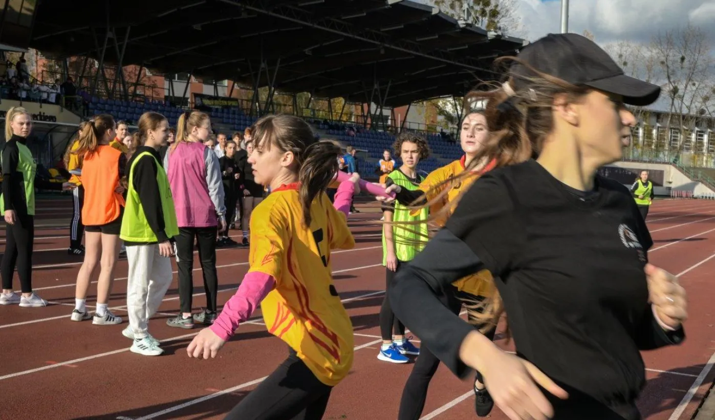 10 listopada 2022 r. na stadionie miejskim im. Grzegorza Duneckiego odbyły się Sztafetowe Biegi z okazji Święta Niepodległości z udziałem uczennic i uczniów toruńskich szkół. Wydarzenie jest elementem Toruńskiej Olimpiady Przedszkoli i Szkół. Fot. Lech Kamiński