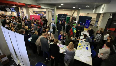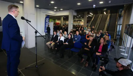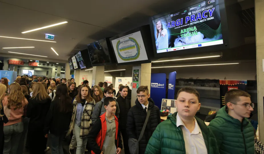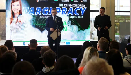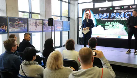 16 listopada 2022 r. w Arenie Toruń odbyły się Targi Pracy, które były częścią lokalnych wydarzeń zaplanowanych w ramach Światowego Tygodnia Przedsiębiorczości. Wydarzenie otworzył Adrian Mól, zastępca prezydenta miasta Torunia. Fot. Sławomir Kowalski