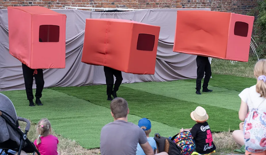 14 lipca 2023 roku rozpoczął się 9. Festiwal Teatrów Ulicznych. W Fosie Południowej obok Zamku Krzyżackiego wystąpił między innymi Teatr Czwarte Miasto ze spektaklem "Mały Gotyk". fot. Wojtek Szabelski