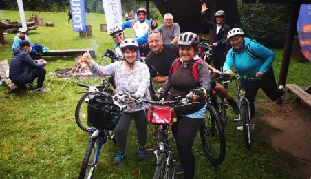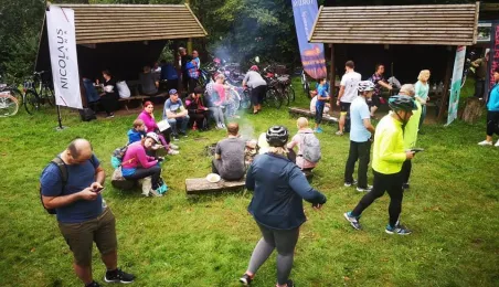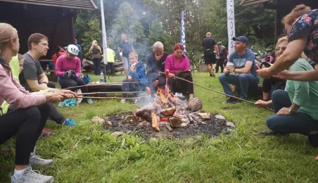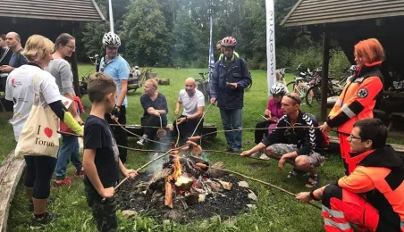 W ramach 4. edycji rajdu "Toruń na Rowery", który odbył się 5 września 2020 r., uczestnicy pokonali 11-kilometrową trasę prowadzącą z Torunia do Olka, gdzie na terenie nadleśnictwa zrobiono ognisko z kiełbaskami. Fot. Stowarzyszenie GoSport