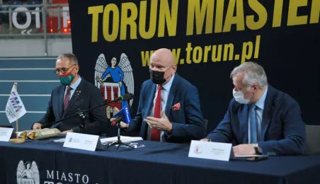 W Toruniu odbędą się 14. Halowe Mistrzostwa Europy w Lekkiej Atletyce w 2024 r. – zadecydowała Europejska Federacja Lekkoatletyczna Masters. Organizacja prestiżowej imprezy została powierzona naszemu miastu już po raz drugi. Decyzję ogłosili 15 grudnia 2021 r. na wspólnej konferencji prasowej w Arenie Toruń Prezydent Miasta Torunia Michał Zaleski, Kurt Kaschke – Prezydent Europejskiej Federacji Lekkoatletycznej Masters i Wacław Krankowski – Prezes Polskiego Związku Lekkiej Atletyki Masters. Fot. Małgorzata Litwin
