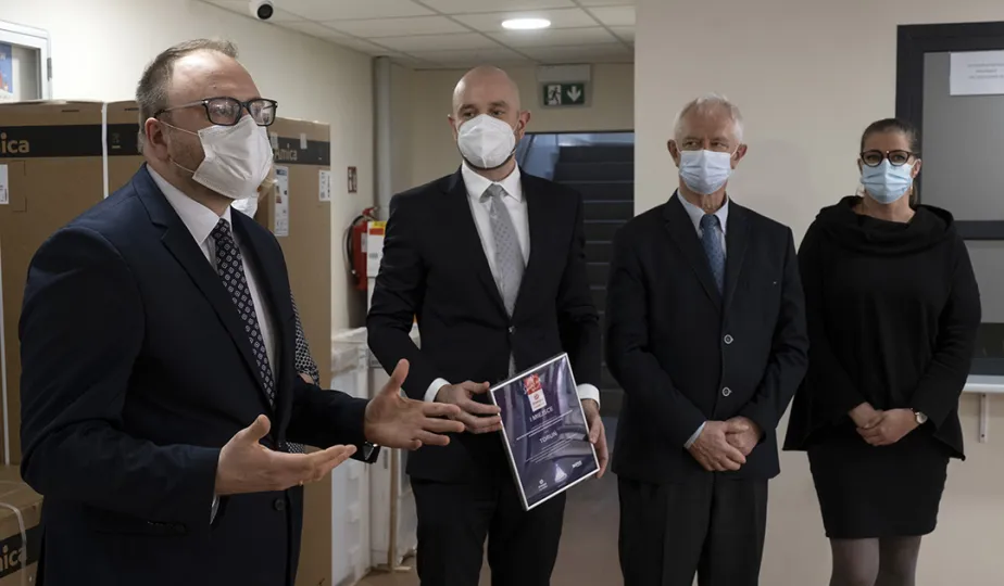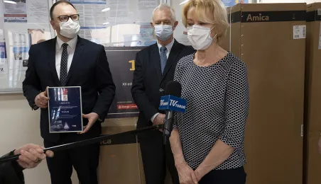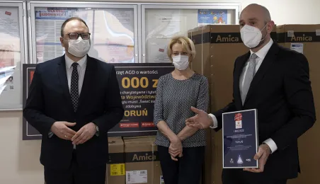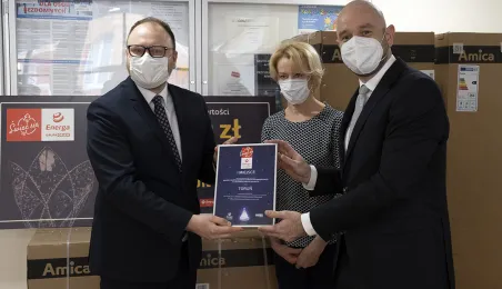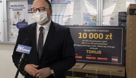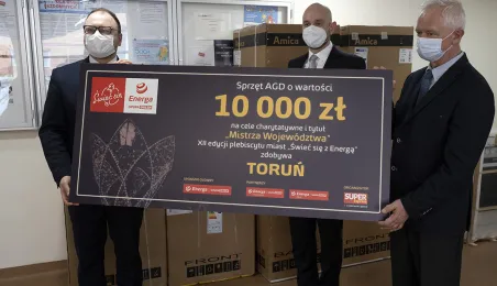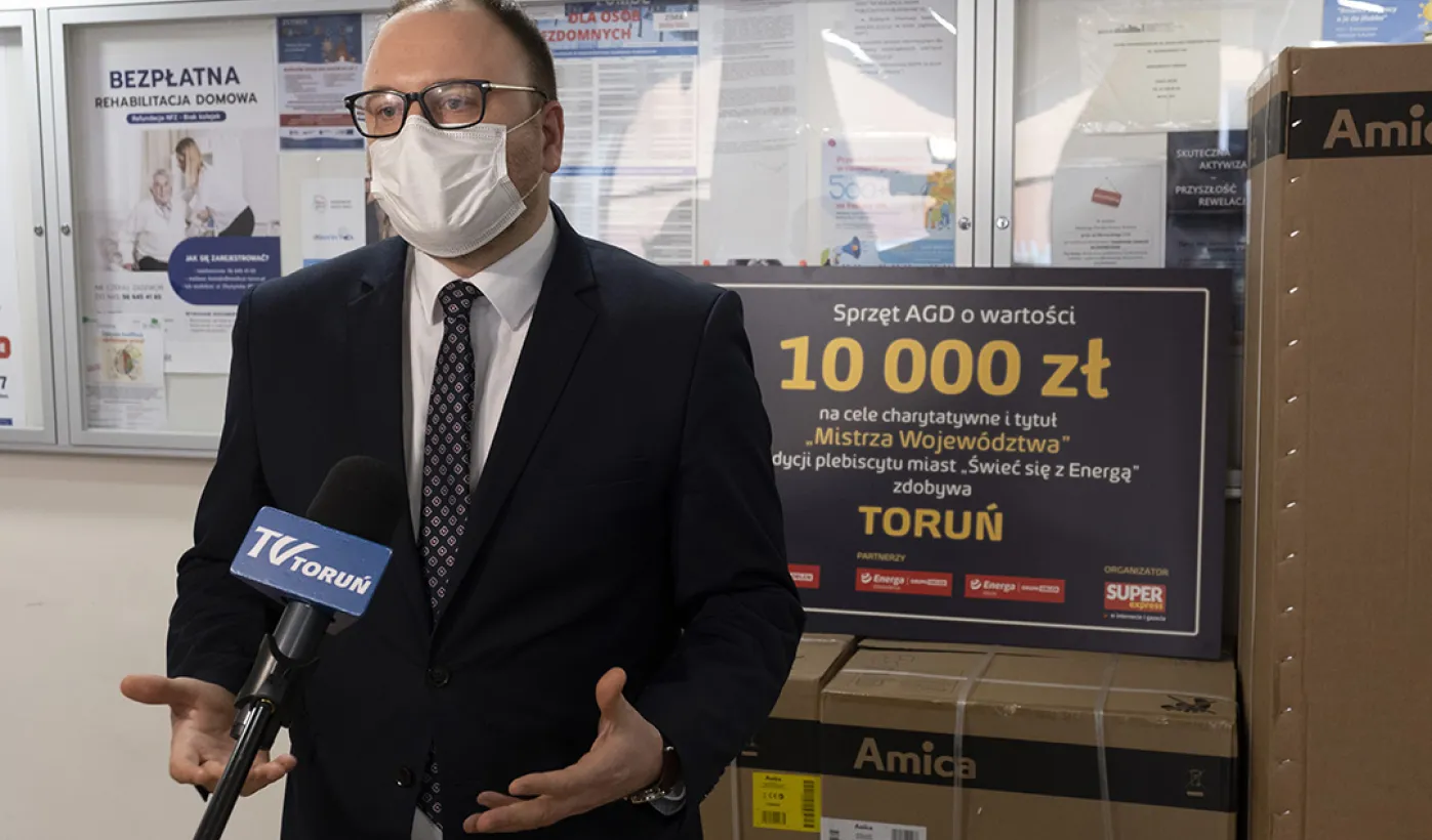 W dniu 25 marca 2021 roku zastępca prezydenta Paweł Gulewski odebrał symboliczny czek na kwotę 10 tys. zł, za którą zakupiony został sprzęt AGD, jaki trafi do rodzin potrzebujących. Jest to nagroda w konkusie Świeć się z Energą. Fot. Wojtek Szabelski