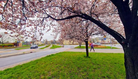 Wiosna 2023 w Toruniu trwa w najlepsze. Robi się coraz bardziej zielono, a na drzewach zakwitły już wiśnie i magnolie. / fot. Paula Gałązka