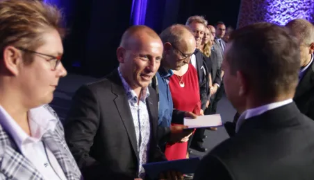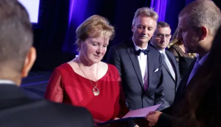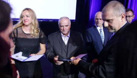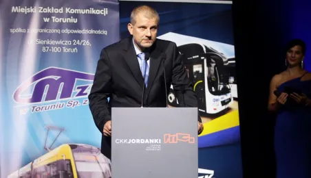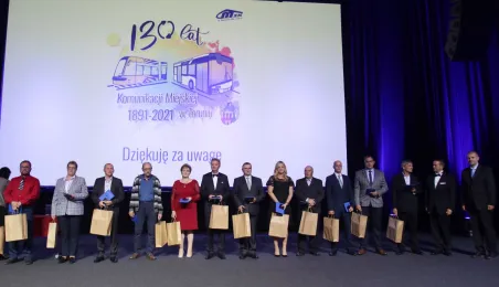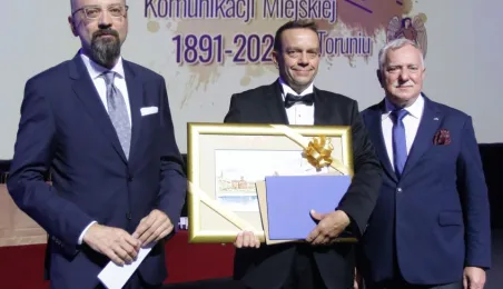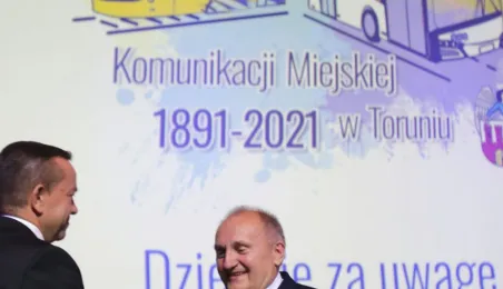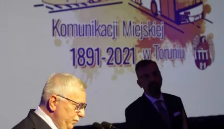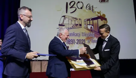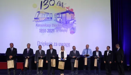 Okazją do podsumowania 130 lat funkcjonowania komunikacji miejskiej w Toruniu była gala, która 9 września 2021 r. odbyła się w sali na Jordankach. Wydarzenie było częścią odbywających się w Toruniu obrad specjalistów od publicznego transportu zbiorowego z całej Polski, zrzeszonych w Izbie Gospodarczej Komunikacji Miejskiej. Podczas uroczystości wręczono medale zasłużonym pracownikom MZK. Zastępca prezydenta Zbigniew Fiderewicz wraz z przewodniczącym Rady Miasta Torunia Marcinem Czyżniewskim wręczyli Medal Thorunium (najwyższe wyróżnienie przyznawane przez Prezydenta Miasta Torunia) wieloletniej pracownicy Miejskiego Zakładu Komunikacji w Toruniu Edycie Urtnowskiej. Fot. Adam Zakrzewski