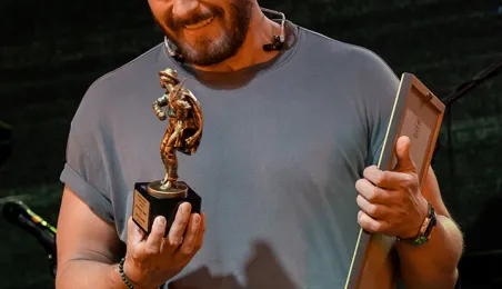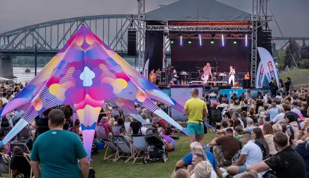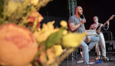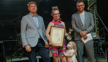 Sławek Uniatowski - Wykonawcą Roku, 27.F*CKDEMONS - Nadzieją Roku, Asia Czajkowska i jej "Pianissima" jako Płyta Roku i DJ Roku - Hałasova to tegoroczni laureaci plebiscytu Radia GRA Toruńskie Gwiazdy. Ogłoszenie wyników nastąpiło podczas plenerowego koncertu na Bulwarze Filadelfijskim 27 lipca 2024 r. W imieniu miasta ngrody wręczył laureatom wiceprezydent Torunia Adam Szponka. Fot. © UMT 2024, autor: Wojtek Szabelski, licencja: CC BY-NC 4.0